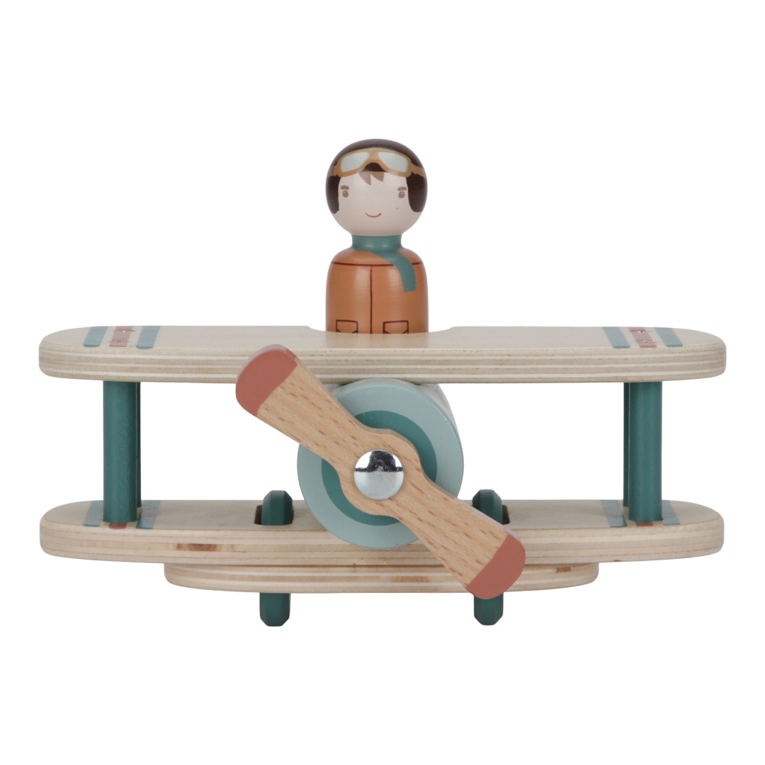 Klaar voor vertrek! Jij bent de piloot in commando, dus start je motor, geef de propeller een draai, en laten we op avontuur gaan. Dit speelvliegtuig is ontworpen voor interactief en fantasierijk spelen. De soepel rollende wielen laten jouw kleintje moeiteloos over de vloer glijden om nieuwe gebieden te verkennen. Het piloten poppetje past bij de andere speelsets van het poppenhuis, zoals de caravan en de schoolbus. Laat de verbeelding van je kind tot nieuwe hoogten stijgen met dit leuke houten speelvliegtuigje.