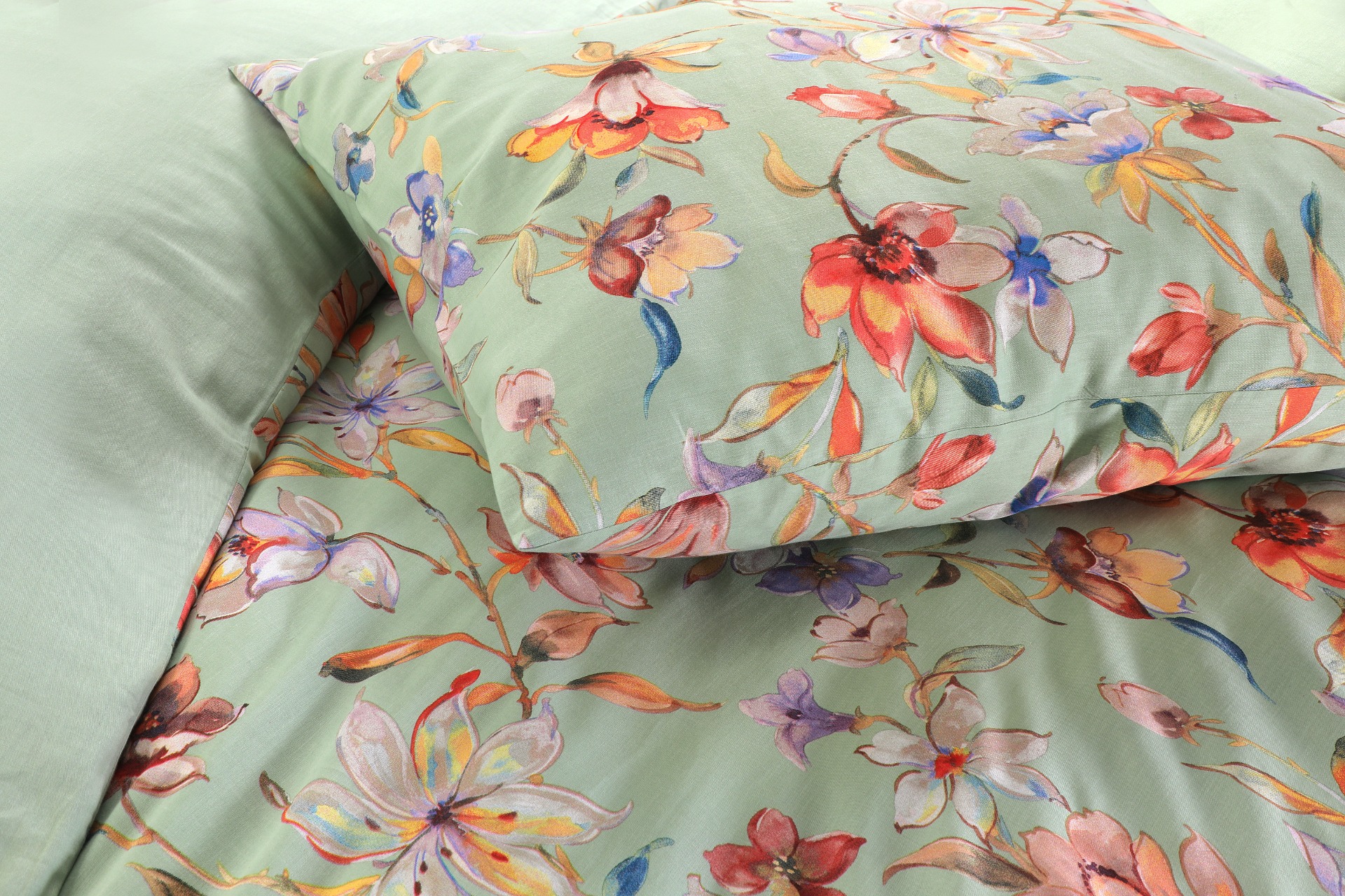 Dit Nora dekbedovertrek van papillon is een aanwinst voor in je slaapkamer. De mooie speelse bloemen komen mooi naar voren tegen de lichtgroene ondergrond. De vrolijke print vind je terug op de bijbehorende kussenslopen. De onderkant van het overtrek heeft een effen groene kleur.